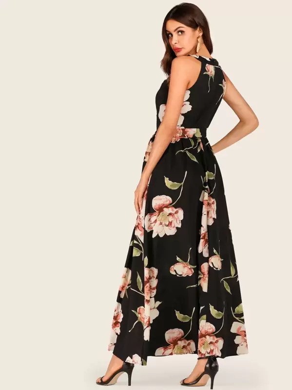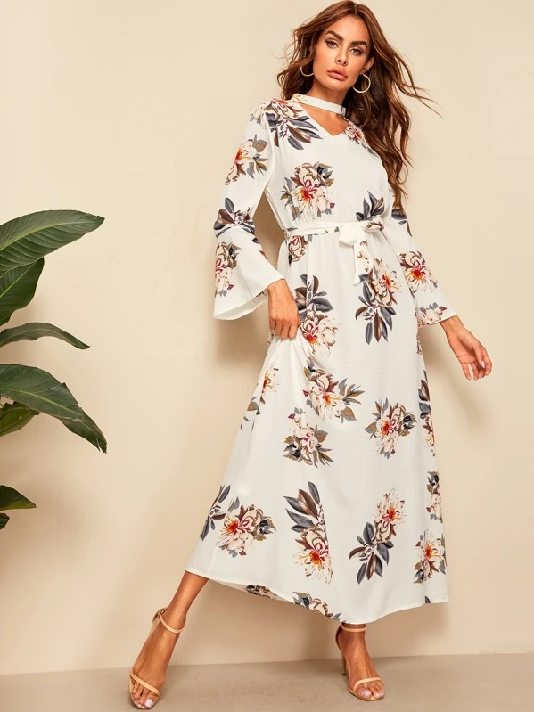 Shein robe longue imprimé floral clearance, Robe longue avec imprimé floral et ceinture | Mode en ligne | SHEIN FRANCE clearance