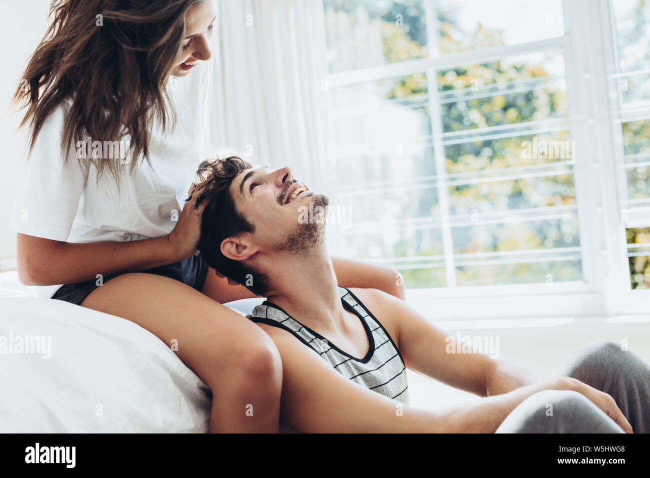 Couple giving massage clearance, Young woman giving head massage to her clearance
