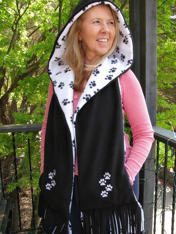 Hooded scarf with pockets clearance, Paw Print Hooded Scarf with Pockets clearance