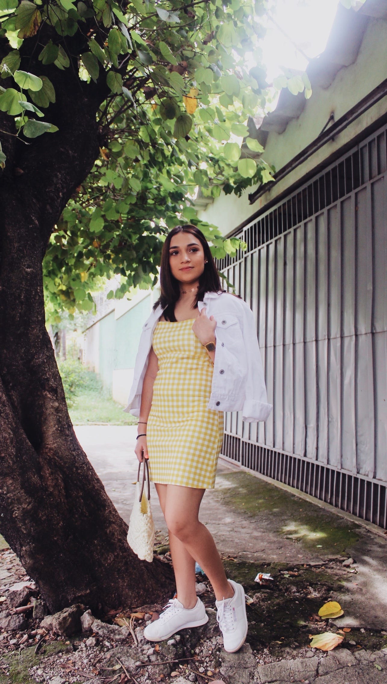 Vestido amarillo con tenis clearance