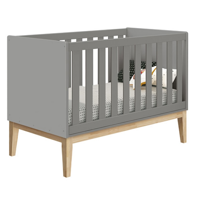 Berço reller classic clearance, Berço Mini Cama Classic Cinza Fosco com Pés Madeira Natural - Reller Móveis - PRMoveis clearance