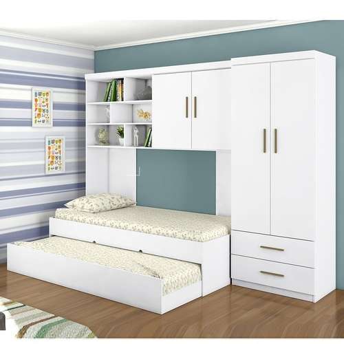 Cama e guarda roupa de criança clearance, Quarto Infantil Chiara Guarda Roupa e Aéreo 2 Portas com Cama e Auxiliar Branco - Phoenix - Quarto Completo - Magazine Luiza clearance