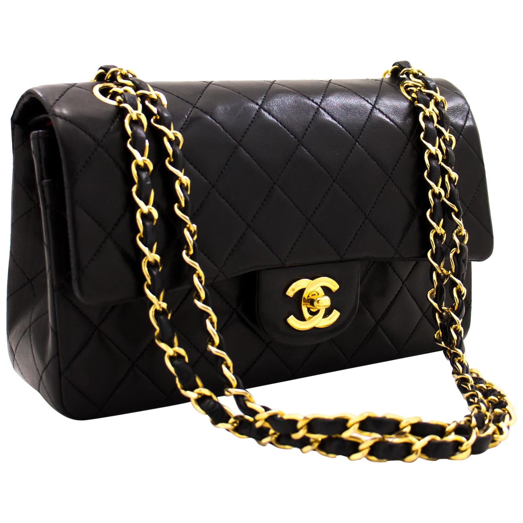 Double chain shoulder bag clearance, Chain Shoulder Bag Black Purse Lambskin clearance