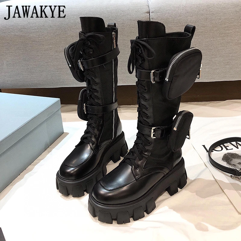 Prada boots aliexpress clearance, New Thick bottom Monolith High heel boots Women lace up Zipper with pocket Long Boots Black Winter Shoes Woman Motorcycle boots|Knee-High Boots| - AliExpress clearance