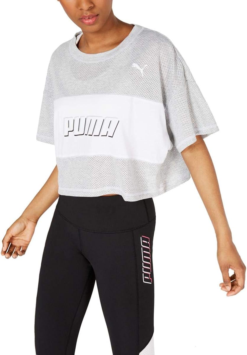 Puma modern sports clearance, PUMA Women's Modern Sports Cropped T-Shirt, Light Gray Heather, L at Amazon Women's Clothing store clearance