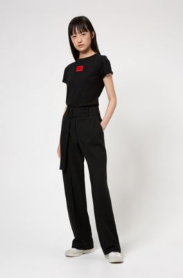 Pantalon large ceinture clearance, Pantalon large ceinturé Femme - Imprimé noir - Pantalons - Femme - Promod clearance