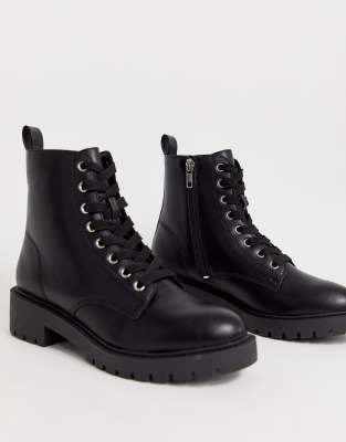 Black flat boots lace up clearance