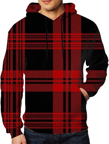 Sudadera cuadros hombre clearance, Amazon.com: Sudadera con capucha escocesa de cuadros rojos negros para hombre, XXL : Ropa, Zapatos y Joyería clearance