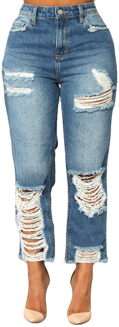 Jeans rotos tiro alto mujer clearance, Pantalones Jeans Levanta Cola Pantalones Jeans De Tiro Alto Para Mujer Rasgados Cintura Alta Levanta Cola New. clearance