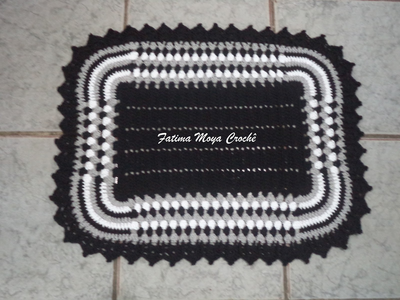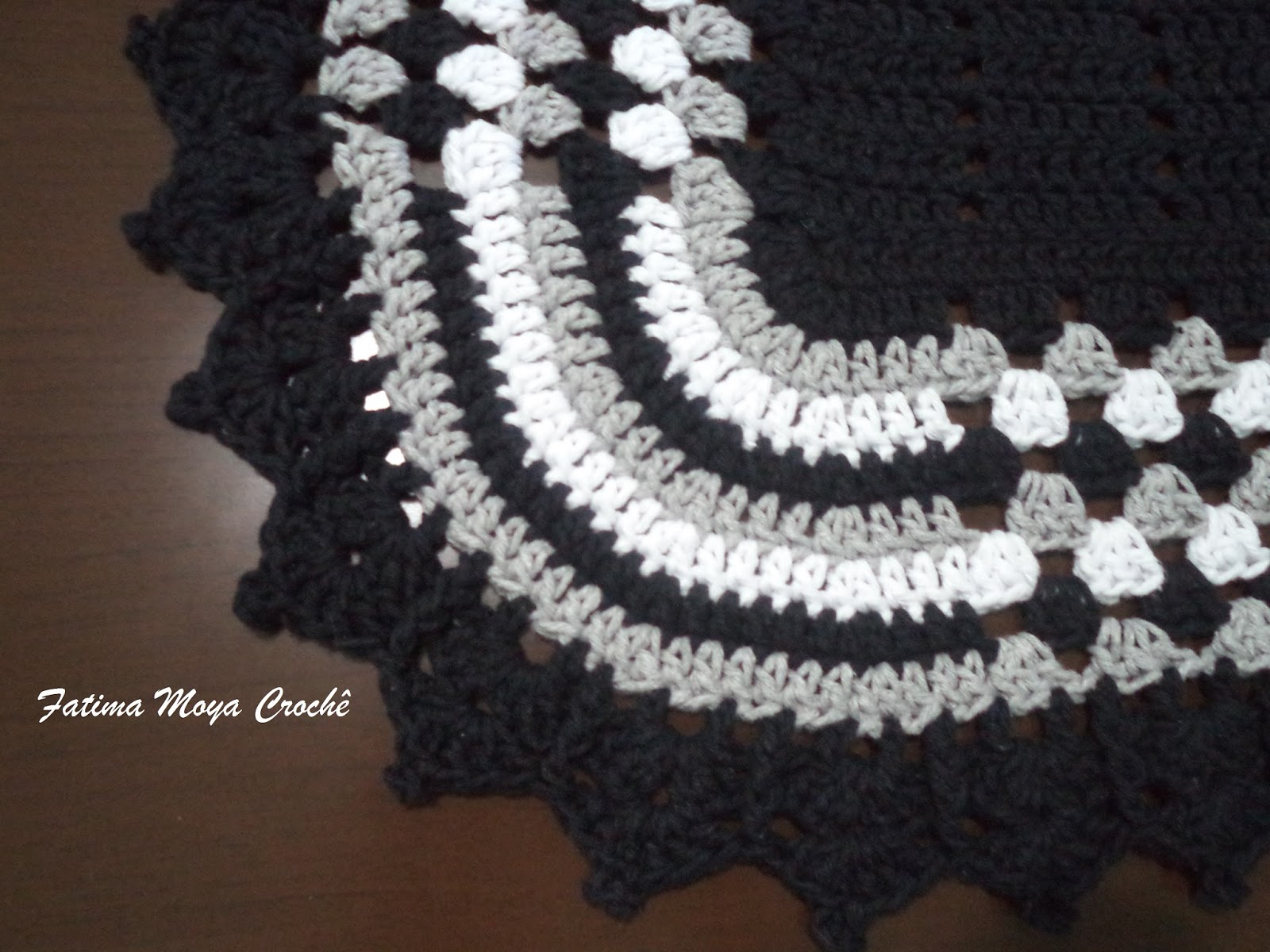 Tapete harmonia preto e branco clearance, Fátima Moya Crochê: Tapete Harmonia em preto, branco e cinza clearance