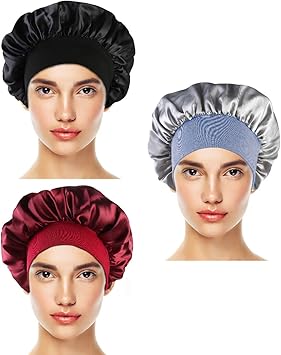 Bonnet pour dormir femme clearance, 3Pcs Bonnet de Sommeil en Satin Femmes Cheveux Bonnet Nuit Dormir Tête Couverture Doux Bonnet de Sommeil (Vin rouge + Noir + Argent): Amazon.fr: Beauté et Parfum clearance