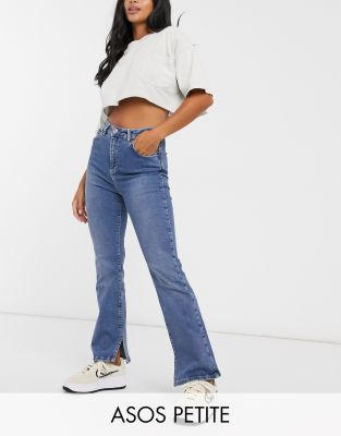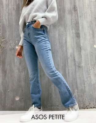 Jeans evase petite clearance, ASOS DESIGN Petite - Jean à taille très basse évasé - Bleu délavé moyen | ASOS clearance