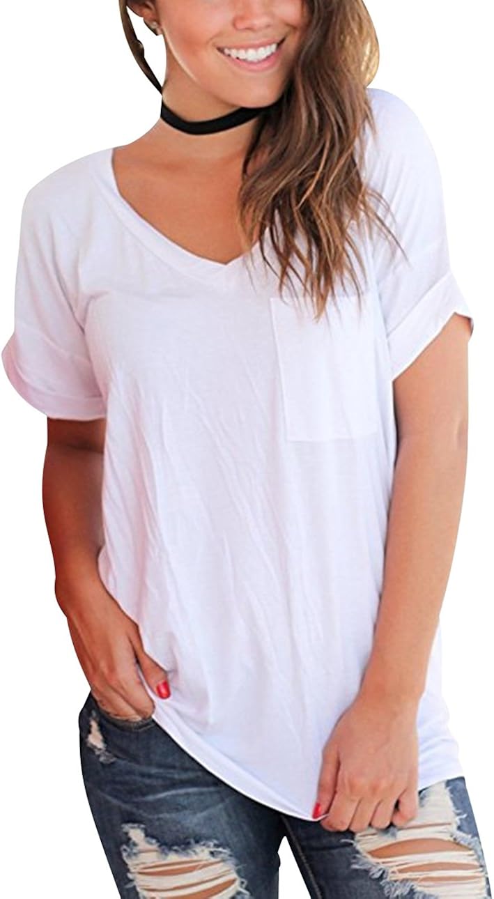 Tee shirt fluide col v femme clearance, Tee Shirt Manche Courte Col V Femme Long T Shirt Manches Courtes Ample Top Fluide Haut Basic Large Ete Oversize Simple Tunique Tops Hauts Baggy Grande Taille Blouse Solides Casual: Amazon.fr: Vêtements clearance