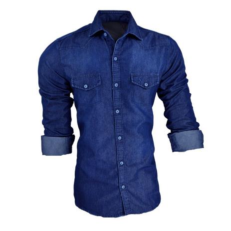 Camisas jeans manga longa clearance, Camisa Jeans Masculina Manga Longa Slim Fit Marinho - Amil - Camisas Masculinas - Magazine Luiza clearance