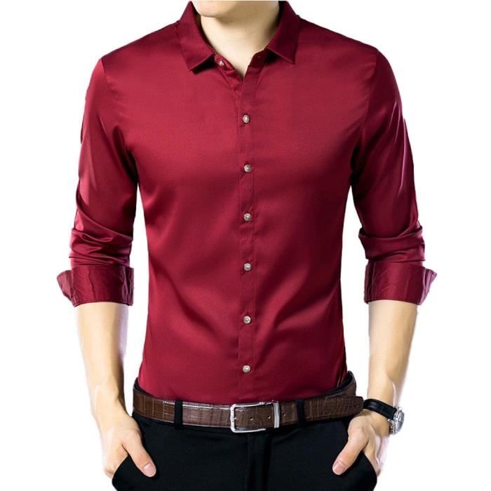 Chemise unie homme clearance, Chemise Homme Slim Fit Manche Longue Couleur Unie Causal Chemise Légère Elegant Rouge - Cdiscount Prêt-à-Porter clearance