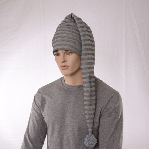 Mens long stocking caps clearance, Long Stocking Cap Gray on Gray Striped clearance