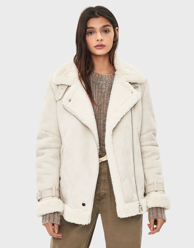 - Cazadora biker doble faz beige sale