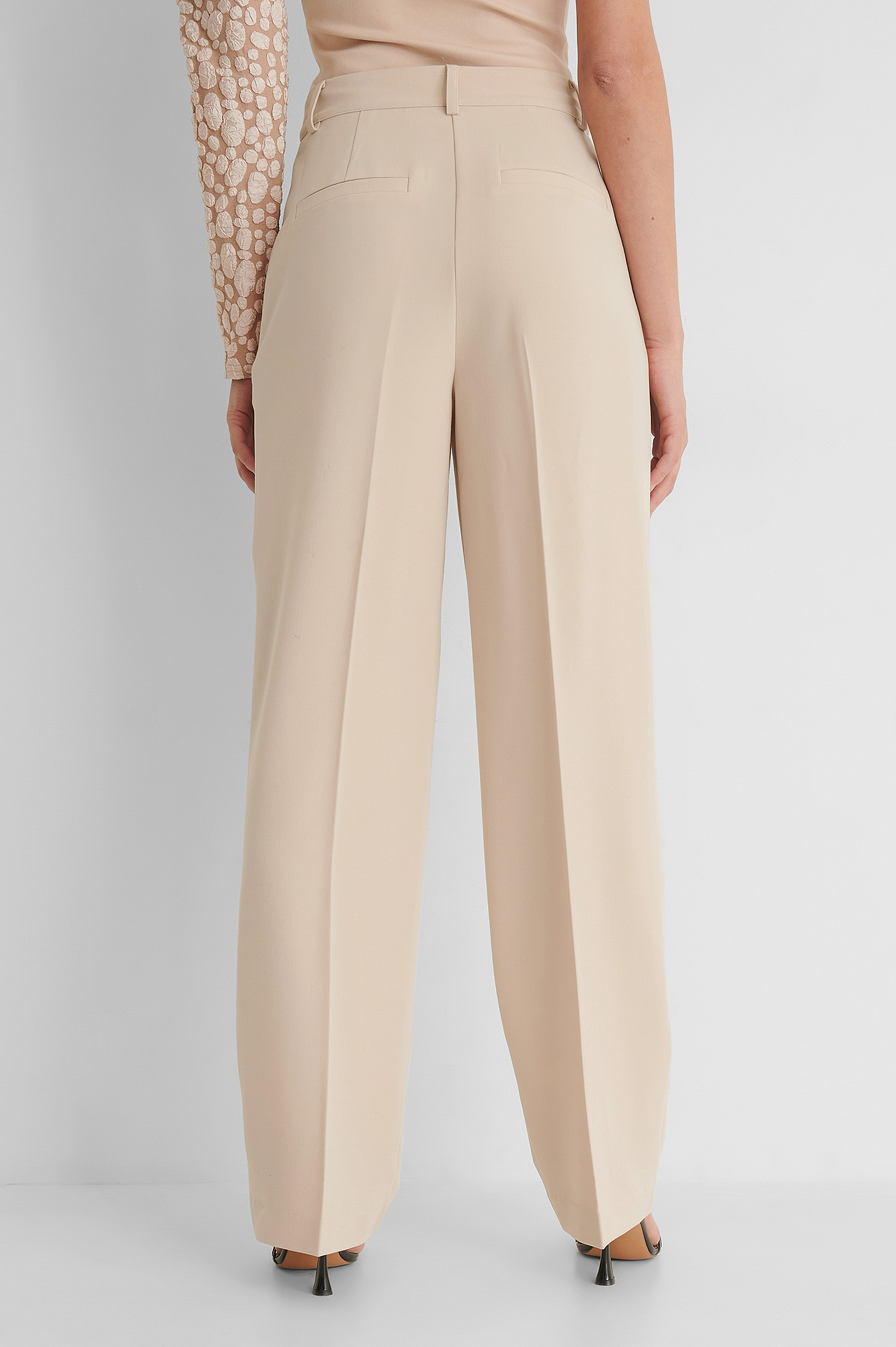 Pantalon plissé beige clearance, Pantalon palazzo beige en crêpe taille haute clearance