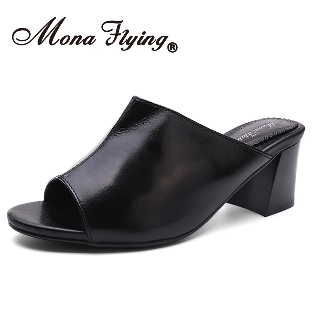 - Cheap Leather block heel mules
