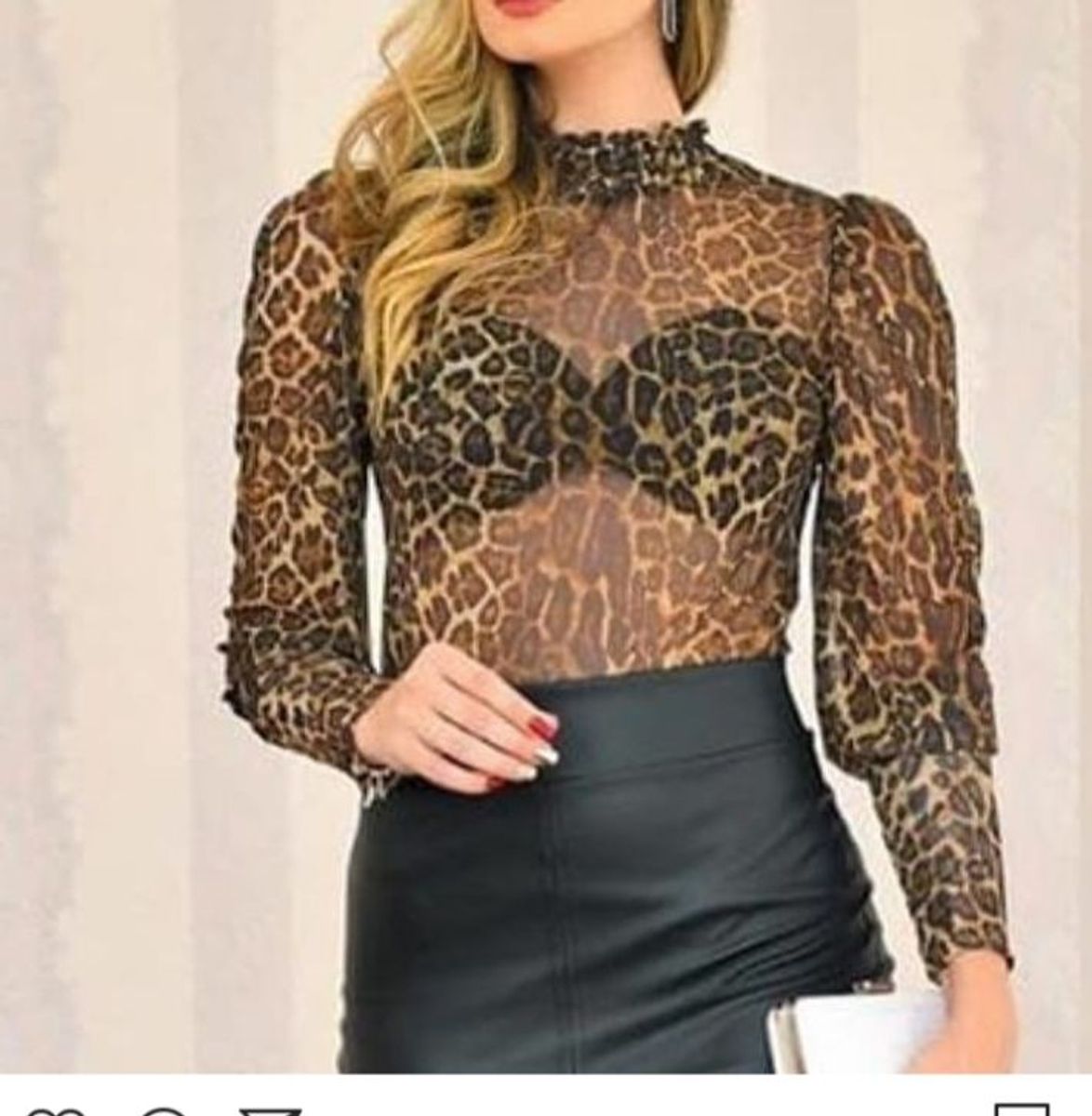 - Shopping Blusa tule oncinha gola alta