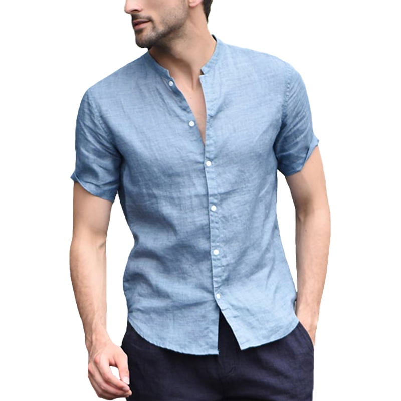 - Cheap Collarless button up shirt mens