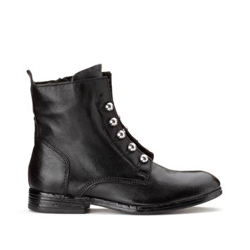 - Bottines femme cuir noir talon plat