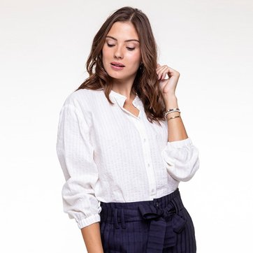 Chemise col cheminée femme clearance, Chemise manches longues pinces et bas arrondi femme - Blanc | 3 SUISSES clearance