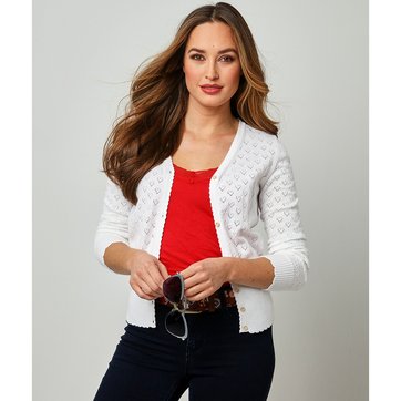 Gilet femme maille ajourée clearance, Gilet femme en maille ajourée avec volants sur l'avant | GÉMO clearance