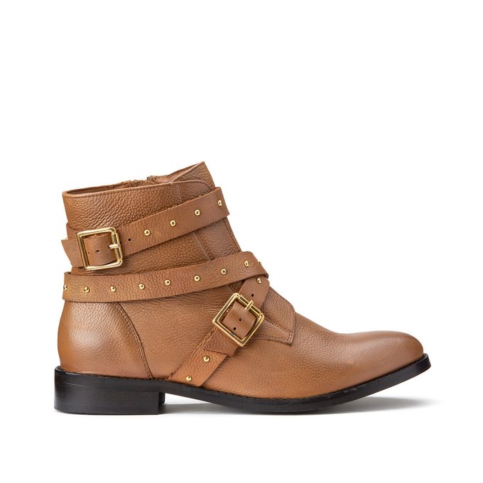 Boots la redoute clearance, Leather flat ankle boots with strap details camel La Redoute Collections | La Redoute clearance
