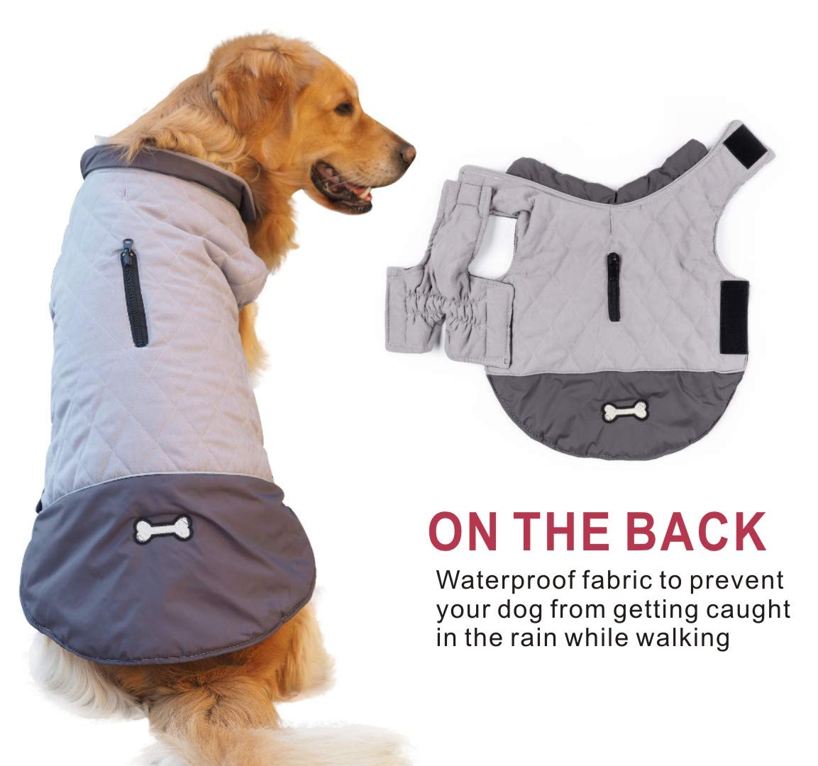 - Waterproof dog coats with harness hole clearance