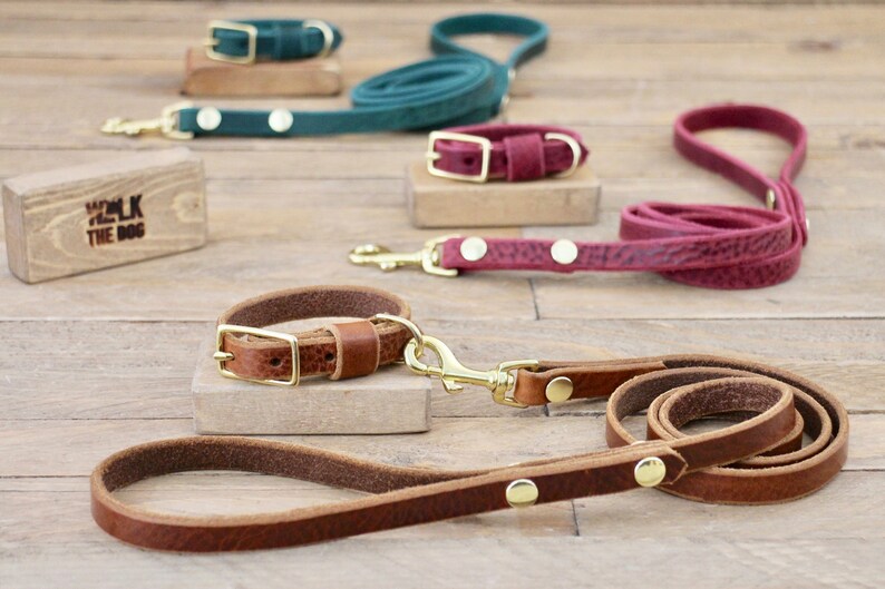 Etsy dog collars and leashes clearance, Leather Dog Collar Leash Set Puppy clearance
