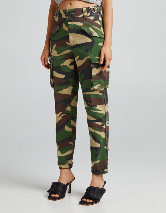 Pantalones de camuflaje mujer bershka clearance, Pantalón algodón cargo camuflaje - Pantalones - Mujer | Bershka clearance