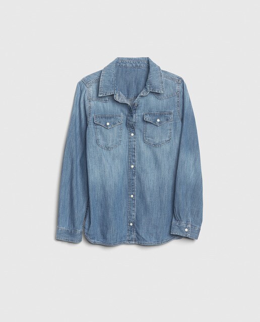 Camisa ganga menina clearance, Camisa de ganga azul de menina · GAP · El Corte Inglés clearance