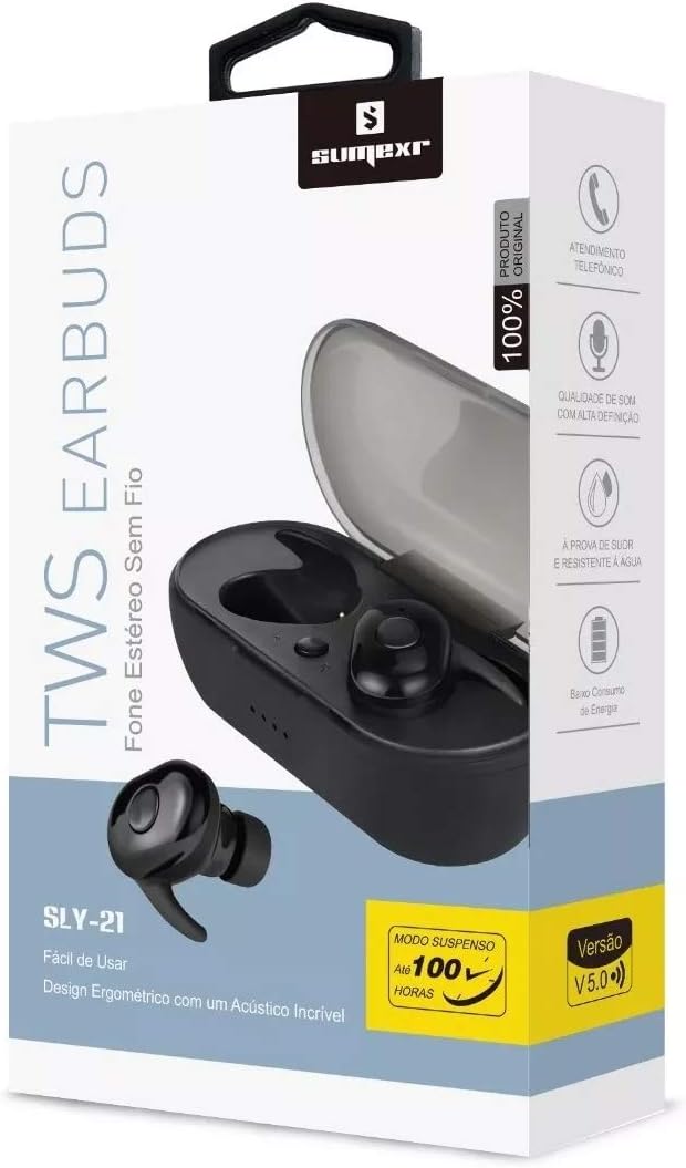 - Fone de ouvido estereo tws earbuds sumexr sem fio bluetooth duplo sold