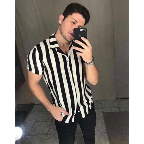 - Camisa social listrada preta e branca sale