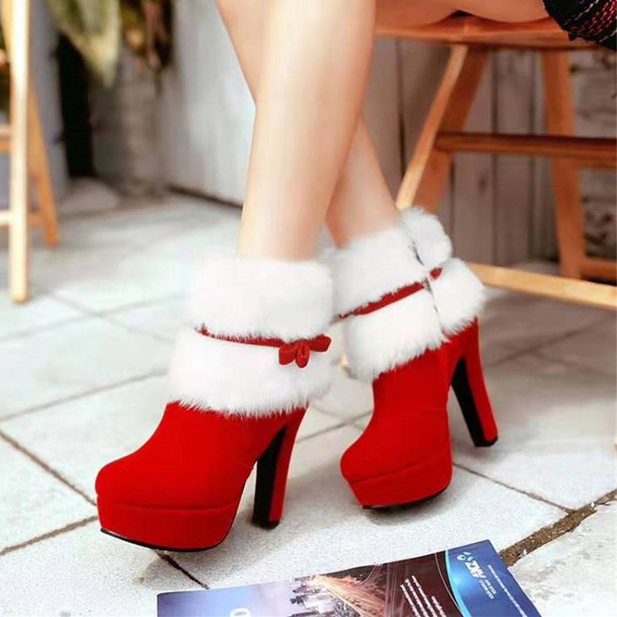 Red fur shoes clearance, Amazon.com: red fur boots clearance